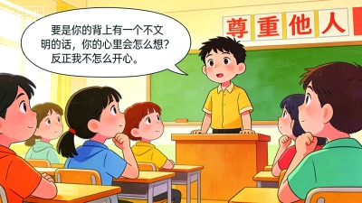 “要是你的背上有一个不文明的话,你的心里会怎么想?”这句话没有攻击性,却直击人心。当欺凌者站在受害者的角度思考时,才能真正意识到自己的行为有多伤人。男孩还补充道:“你们如果被欺负,我会去帮助你们,你们这样对我,觉得做得对吗?”作为班长,他用自己的担当,唤醒了同学的同理心和羞耻心,最终赢得了道歉和尊重。