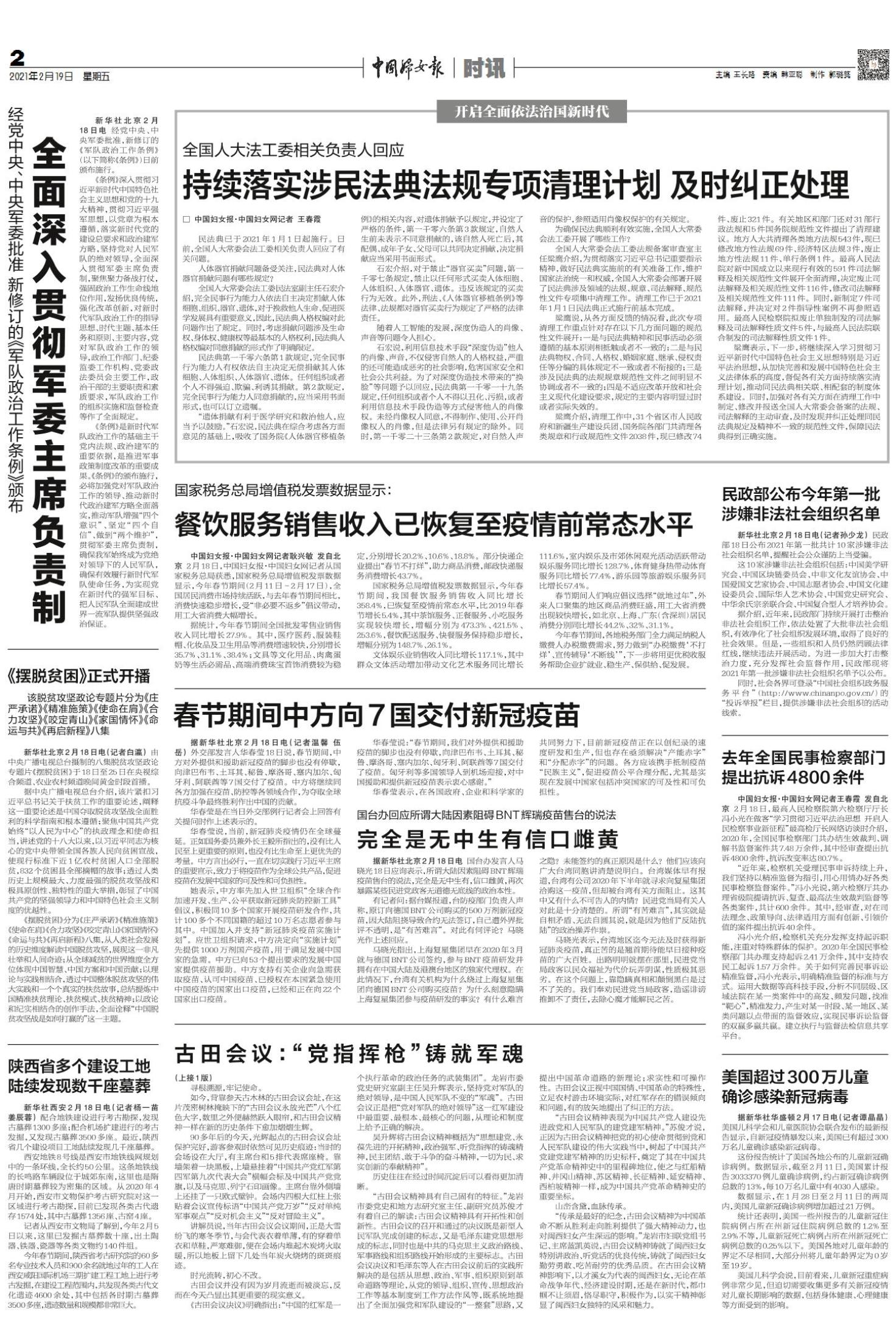 全国人大常委会法工委法规备案审查室主任梁鹰介绍,为贯彻落实习近平总书记重要指示精神,做好民法典实施前的有关准备工作,维护国家法治统一和权威,全国人大常委会部署开展了民法典涉及领域的法规、规章、司法解释、规范性文件专项集中清理工作。清理工作已于2021年1月1日民法典正式施行前基本完成。