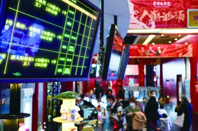 2月17日,在北京西单的首都电影院,屏幕显示着场次安排和余座信息。 据全国电影票务综合信息管理系统初步统计,截至2月17日17时,2021年春节档电影票房达75.44亿元,继2019年59.05亿元后,再次刷新春节档全国电影票房。同时创造了全球单一市场单日票房、全球单一市场周末票房等多项世界纪录。 新华社记者 陈钟昊/摄