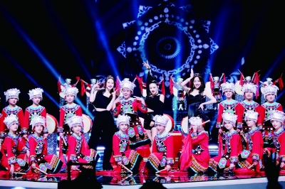 手起棒落,红绸翻飞,激昂的鼓点声中,身着苗族传统服饰的苗鼓队跃动、起舞——传统非遗文化与现代流行音乐在碰撞中实现“跨界”融合,《无价之姐》从此有了不同以往的艺术诠释。