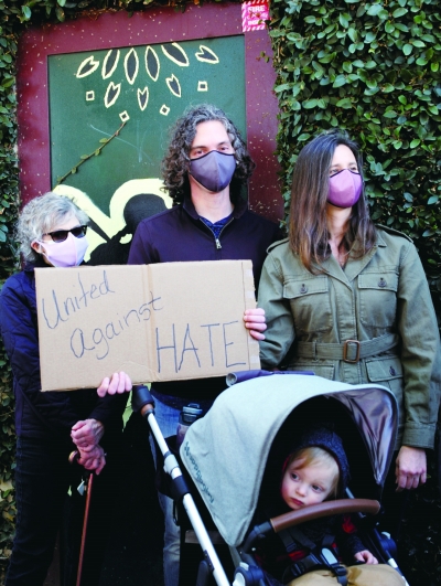 2月27日,在美国加利福尼亚州旧金山湾区圣马特奥市,人们参加集会反对针对亚裔的歧视行为和仇恨犯罪。