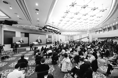3月7日,十三届全国人大四次会议举行记者会,国务委员兼外交部部长王毅就“中国外交政策和对外关系”相关问题回答中外记者提问。图为梅地亚分会场记者提问。 中国妇女报全媒体记者 杨睿/摄