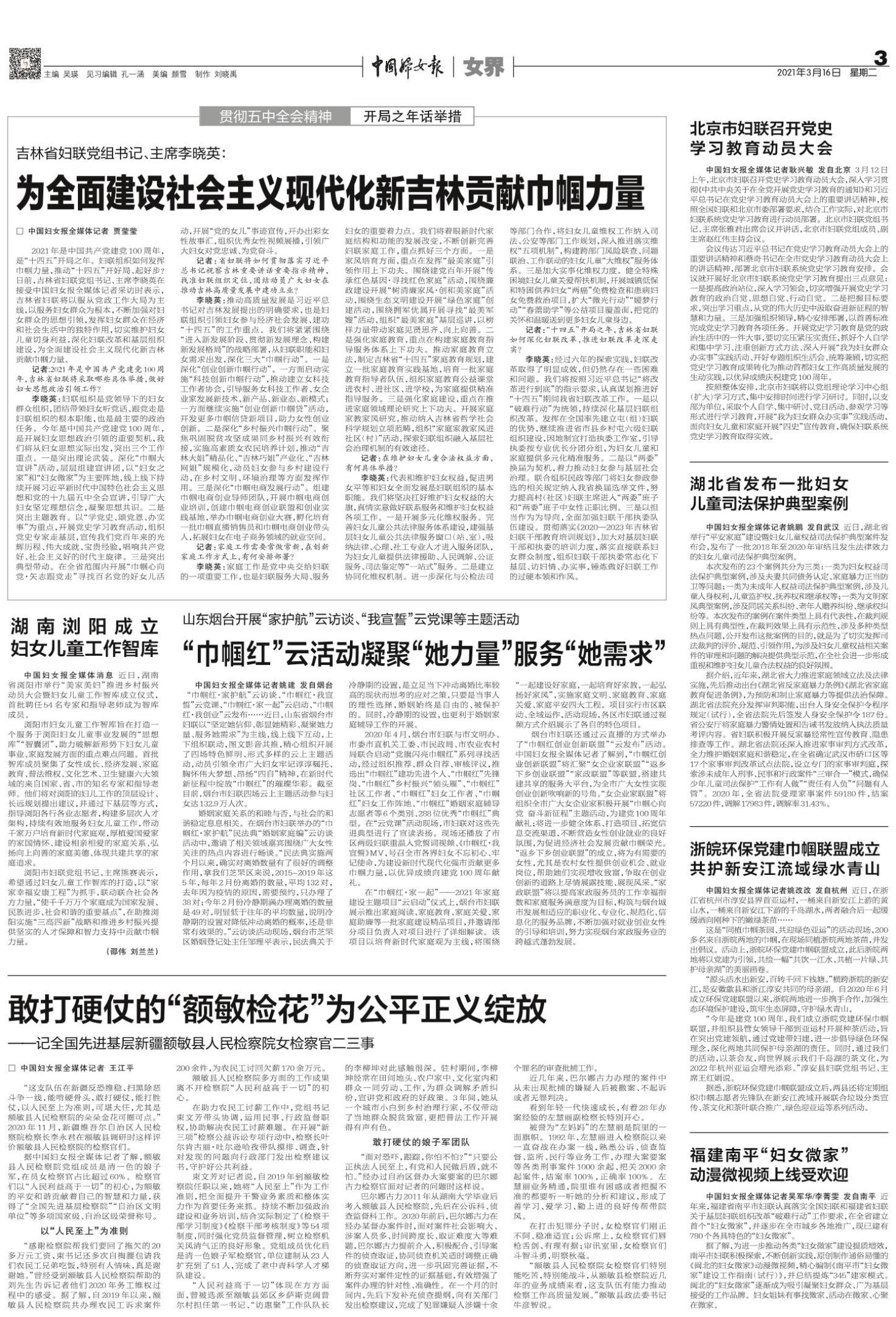 中国妇女报全媒体记者姚建 发自烟台 “巾帼红·家护航”云访谈、“巾帼红·我宣誓”云党课、“巾帼红·家一起”云启动、“巾帼红·我创业”云发布……近日,山东省烟台市妇联以“坚定她信仰、彰显她精彩、凝聚她力量、服务她需求”为主线,线上线下互动,上下组织联动,图文影音共推,精心组织开展了四场特色鲜明、形式多样的云上主题活动,动员引领全市广大妇女牢记谆谆嘱托、胸怀伟大梦想、昂扬“四自”精神,在新时代新征程中绽放“巾帼红”的璀璨华彩。截至目前,烟台市妇联四场云上主题活动参与妇女达132.9万人次。