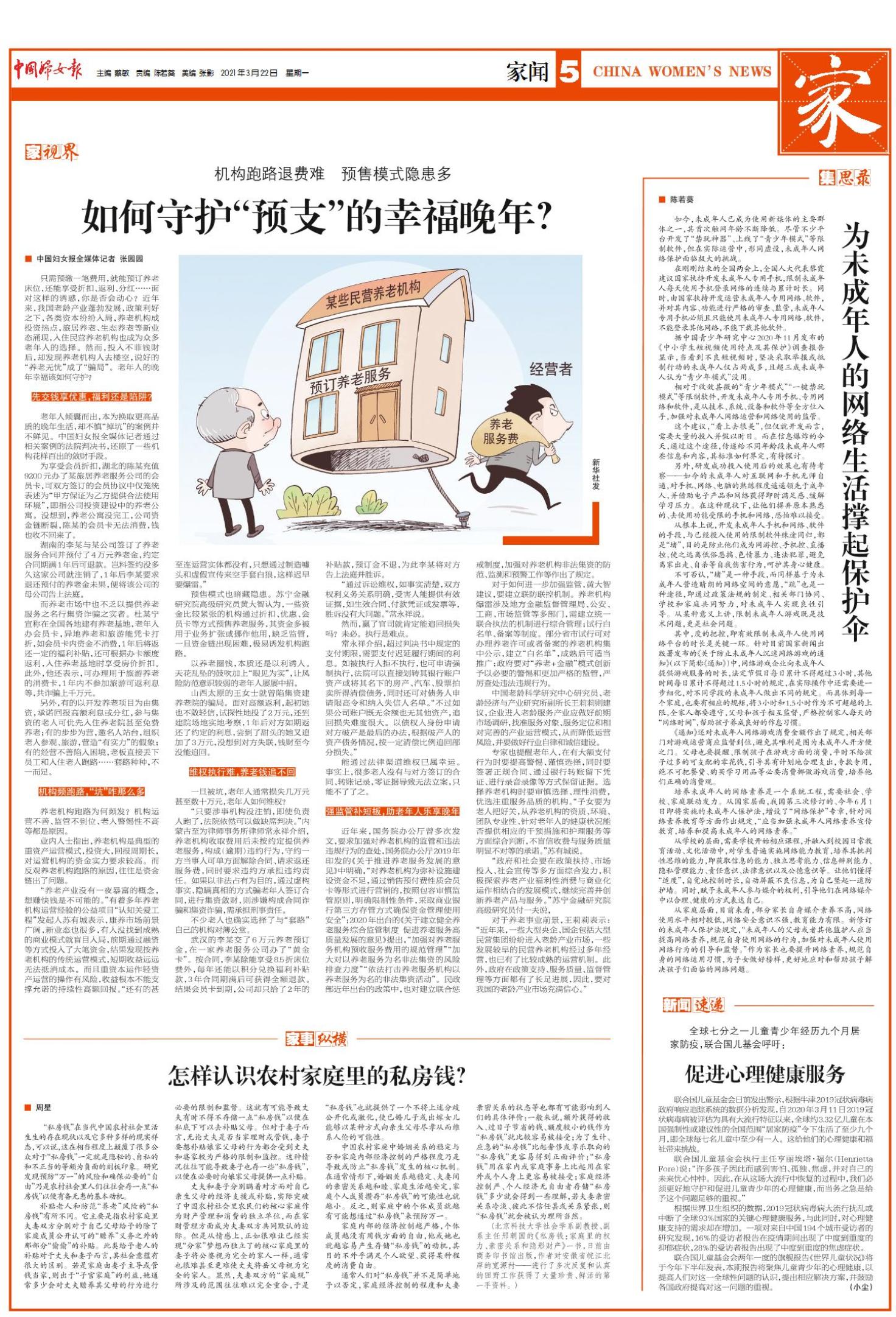 《中国妇女报》(电子版)的一切内容(包括但不限于文字、图片、PDF、图表、标志、标识、商标、版面设计、专栏目录与名称、内容分类标准以及为读者提供的任何信息)仅供中国妇女报读者阅读、学习研究使用,未经中国妇女报及/或相关权利人书面授权,任何单位及个人不得将《中国妇女报》(电子版)所登载、发布的内容用于商业性目的,包括但不限于转载、复制、发行、制作光盘、数据库、触摸展示等行为方式,或将之在非本站所属的服务器上作镜像。否则,中国妇女报将采取包括但不限于网上公示、向有关部门举报、诉讼等一切合法手段,追究侵权者的法律责任。