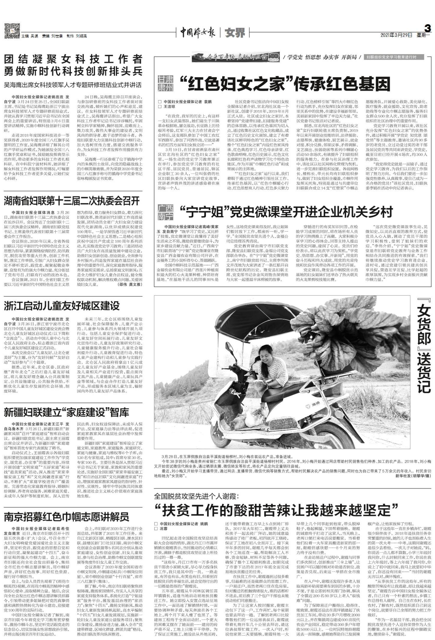中国妇女报全媒体记者姚改改 发自宁波 3月24日至25日,全国妇联副主席、书记处书记吴海鹰赴浙江宁波出席女科技领军人才专题研修班结业式,并就认真学习贯彻习近平总书记在全国两会上的重要讲话,特别是3月6日重要讲话精神,实施巾帼科技创新行动调研。
