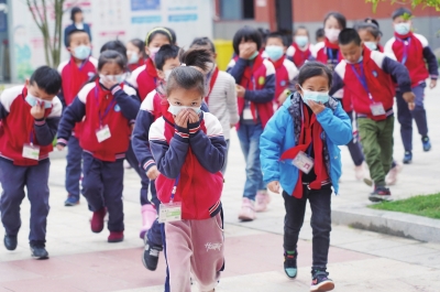 4月14日,湾里五小的学生们在老师的组织下进行应急避险演练。    在2021年全民国家安全教育日即将到来之际,江西省南昌市湾里管理局第五小学联合公安、消防等部门,对全校师生进行“国家安全教育”“普及消防安全知识”以及“预防网络电信诈骗”等主题教育活动,增强师生对国家安全的认识,自觉提升维护国家安全和保护自身安全的意识。