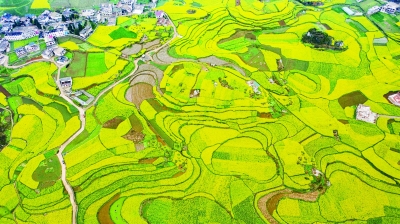 这是贵州省六盘水市六枝特区木岗镇的油菜花田(3月5日摄,无人机照片)。谷雨前后,种瓜点豆。春天是满怀希望的季节。农人在广袤田野辛勤耕耘,春耕备耕已从南向北进入高潮。华南的早稻、南方的油菜花、华北的小麦,已经纷纷绿的绿、黄的黄,展现出盎然的生机。 新华社记者 陶亮/摄