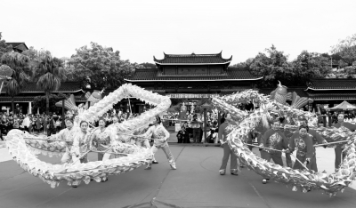 4月14日农历三月初三,在广西三江侗族自治县多耶广场,由清一色妇女组成的两支舞龙队正在进行传统舞龙表演。连日来,壮乡广西为欢度“三月三”,举办了主题为“感党恩 跟党走”的1000多场次活动,各地通过山歌对唱展演、民族精品旅游、特色体育赛事等丰富多彩的活动,欢庆“三月三”传统佳节。(中国妇女报全媒体记者高峰/吴练勋 文/图)