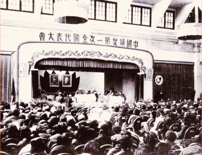 1949年3月24日下午2时,中国妇女第一次全国代表大会在中南海怀仁堂隆重开幕。毛泽东为大会题词:“为增加生产、为争取民主权利而奋斗。”中共中央的贺电充分肯定了大会的重要意义:“当此中国人民革命即将在全国范围内获得最后胜利的时候,你们在北平举行第一届中国妇女代表大会,这是一件具有伟大意义的事。”并激励妇女团结一致,担当重任:“数达中国人口一半的中国妇女,在目前和未来的伟大斗争中,所巳负和将负的责任,均比过去任何时期为大。”