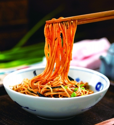 面条极细,趁热拌匀,用筷子深深戳入,一夹、一拖、一扯,面条末端弹开在空气中舞蹈。油光闪闪里将几分久违的躁动释放,酱香、葱香、麦香一圈圈若涟漪一般荡开。若是香气有音律,三重奏的掷地有声可以闪烁出老饕们对高热量的别样推崇。