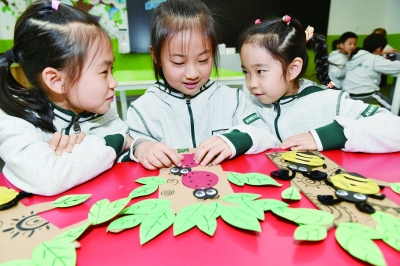 4月21日,南京师范大学附属中学江山小学学生参与环保主题小制作“森林里的昆虫”。    “世界地球日”来临之际,各地学校开展主题活动,增强学生热爱地球、保护环境的意识。    新华社发(方东旭/摄)