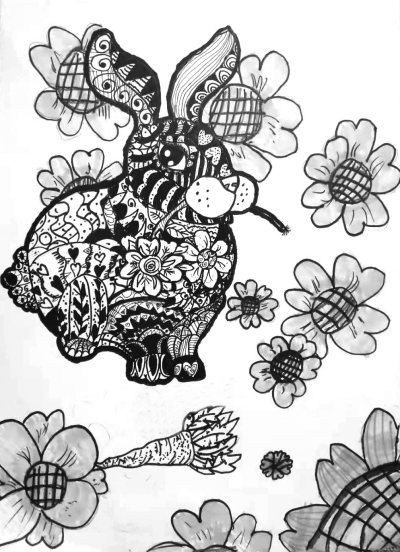 《鲜花与兔子》 钟梓琪(6岁)