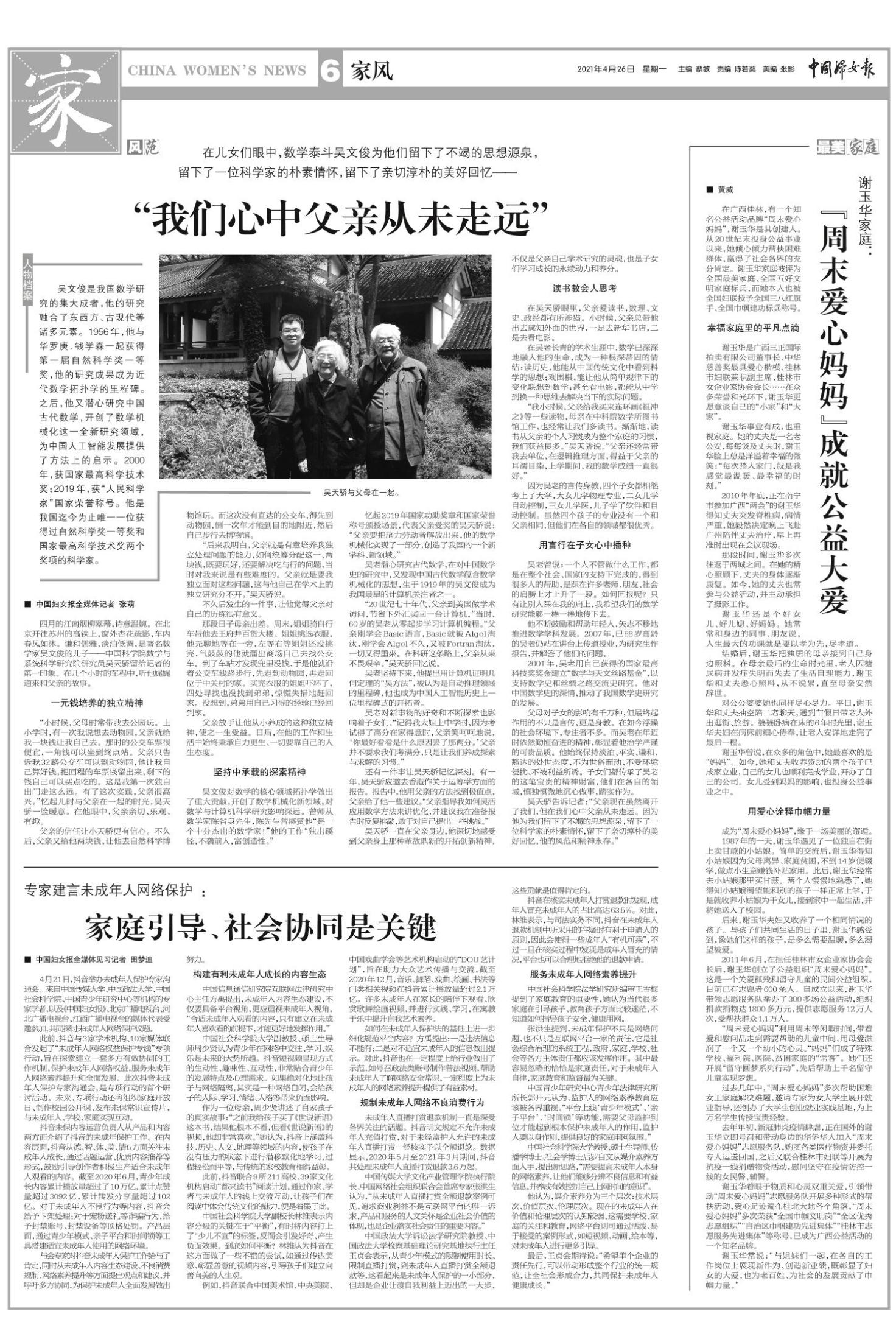 《中国妇女报》(电子版)的一切内容(包括但不限于文字、图片、PDF、图表、标志、标识、商标、版面设计、专栏目录与名称、内容分类标准以及为读者提供的任何信息)仅供中国妇女报读者阅读、学习研究使用,未经中国妇女报及/或相关权利人书面授权,任何单位及个人不得将《中国妇女报》(电子版)所登载、发布的内容用于商业性目的,包括但不限于转载、复制、发行、制作光盘、数据库、触摸展示等行为方式,或将之在非本站所属的服务器上作镜像。否则,中国妇女报将采取包括但不限于网上公示、向有关部门举报、诉讼等一切合法手段,追究侵权者的法律责任。
