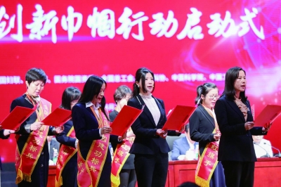 四月二十五日,女科技工作者代表在科技创新巾帼行动启动式上向广大女科技人员发出倡议。