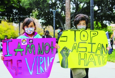 4月25日,人们在美国加利福尼亚州旧金山湾区城市圣何塞集会抗议针对亚裔的歧视行为和仇恨犯罪。新华社发(董旭东/摄)