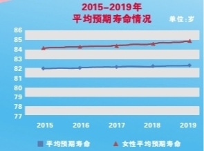 ——女性平均预期寿命持续增长。2019年,北京市平均预期寿命为82.31岁,比2015年提高0.36岁;其中,女性为84.88岁,比2015年提高0.72岁。