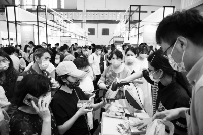 连日来,桂发祥十八街麻花展厅人潮涌动,生产车间的老师傅在现场向观众展示国家级非物质文化遗产——十八街麻花搓制技艺。观众先饱眼福后饱口福,品尝后拎上几件满载而归。展会还没闭幕,带来的展品已宣告售罄。