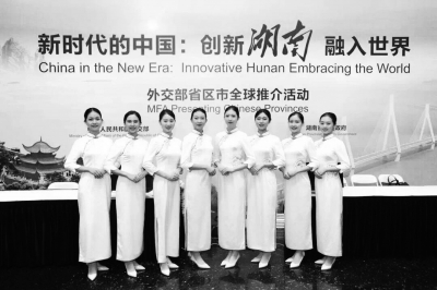 湖南女子学院礼仪团惊艳亮相外交部湖南全球推介活动。
