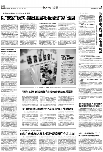 《中国妇女报》(电子版)的一切内容(包括但不限于文字、图片、PDF、图表、标志、标识、商标、版面设计、专栏目录与名称、内容分类标准以及为读者提供的任何信息)仅供中国妇女报读者阅读、学习研究使用,未经中国妇女报及/或相关权利人书面授权,任何单位及个人不得将《中国妇女报》(电子版)所登载、发布的内容用于商业性目的,包括但不限于转载、复制、发行、制作光盘、数据库、触摸展示等行为方式,或将之在非本站所属的服务器上作镜像。否则,中国妇女报将采取包括但不限于网上公示、向有关部门举报、诉讼等一切合法手段,追究侵权者的法律责任。