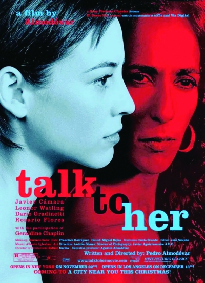 在尼古拉斯·凯奇主演的一部影片《天使之城》中有这样的情节:女主角拒绝了身为天使的尼古拉斯·凯奇的爱,转而与一个平凡的人类相爱并结婚,理由就是天使没有感官,天使没有办法感受到来自人间的一切感觉,没有办法感受到爱人的抚摸与触碰。这就像是在《对她说》中所发生的一样,不在意对方的反馈,不在意对方是否应答,只是自己不断地倾诉,不断地向对方表达我们自己,这样做看似是在无私的付出,实则是对对方的无视与不尊重。眼泪的存在是因为伤心到无法自已,而不是为了向自己、向他人证明此刻的悲伤不是幻觉,同样的,语言的存在、话语的存在是为了交流两个人的心,而不是单纯为了把一句话重复百遍。对她说,只是一个开始,剩下更重要的是,听她怎么说……