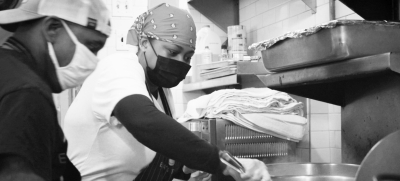 杜兰迪斯说:“这是我在‘艾玛的火炬’的第九周,我学到了很多东西。像烹饪、刀功、浓缩咖啡技巧、二厨技能等等。”
