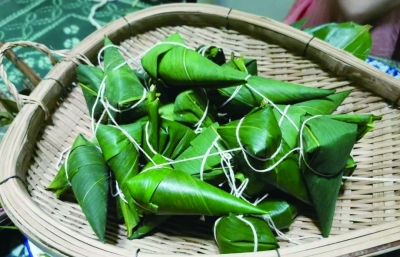 看着那一串串绿油油的尖角粽子,我们好感动,这一个个粽子里都饱含着汪婆婆的无私与慈爱。最后我们将包好的粽子煮熟、分别送给了亲人、朋友和同事们品尝。