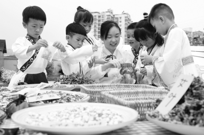 6月10日,在重庆市北碚区缙云幼儿园,老师指导孩子制作香囊。当日,重庆市北碚区缙云幼儿园举行迎端午主题活动,孩子们通过参与旱地龙舟、制作香包、画团扇、包粽子等民俗体验活动,感受传统节日的魅力。 新华社发(秦廷富/摄)