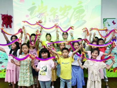 折叶、盛料、压实、裹叶、扎绳……安踏鞋业一厂、百宏公司和百凯公司儿童之家四点钟学校的孩子们在社工及家长志愿者的指导下,认真学习包粽子,深入了解中华美食;在林格社区、卡尔美公司、后间社区儿童之家四点钟学校,孩子们学习端午节的相关知识,并把对端午节的认识进行绘画创造,加深对端午节的认知;在三福纺织有限公司儿童之家四点钟学校,孩子们通过折、画、粘等手作工艺,制作“舞龙拉花”,感受中国传统文化的魅力。