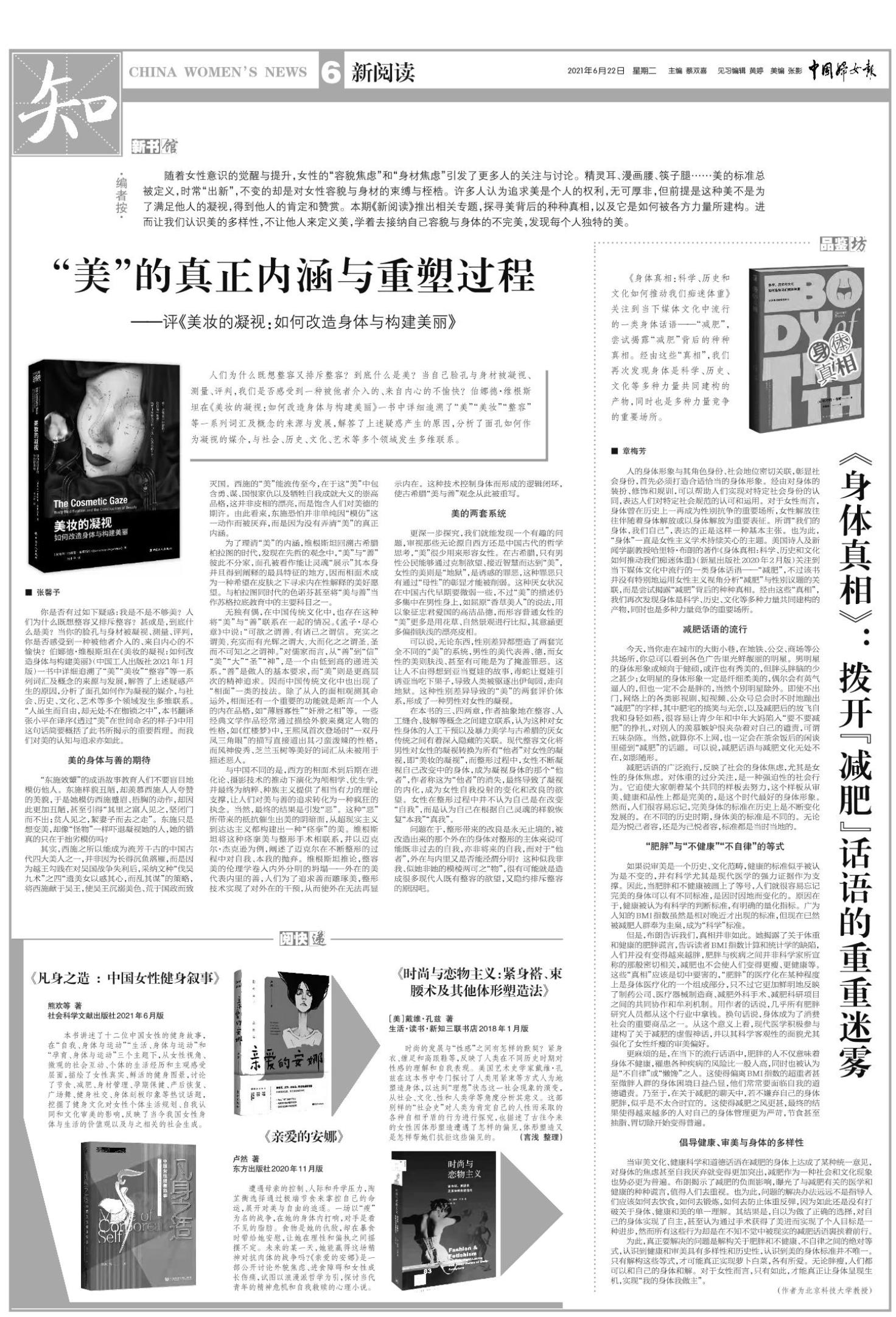 随着女性意识的觉醒与提升,女性的“容貌焦虑”和“身材焦虑”引发了更多人的关注与讨论。精灵耳、漫画腰、筷子腿……美的标准总被定义,时常“出新”,不变的却是对女性容貌与身材的束缚与桎梏。许多人认为追求美是个人的权利,无可厚非,但前提是这种美不是为了满足他人的凝视,得到他人的肯定和赞赏。本期《新阅读》推出相关专题,探寻美背后的种种真相,以及它是如何被各方力量所建构。进而让我们认识美的多样性,不让他人来定义美,学着去接纳自己容貌与身体的不完美,发现每个人独特的美。