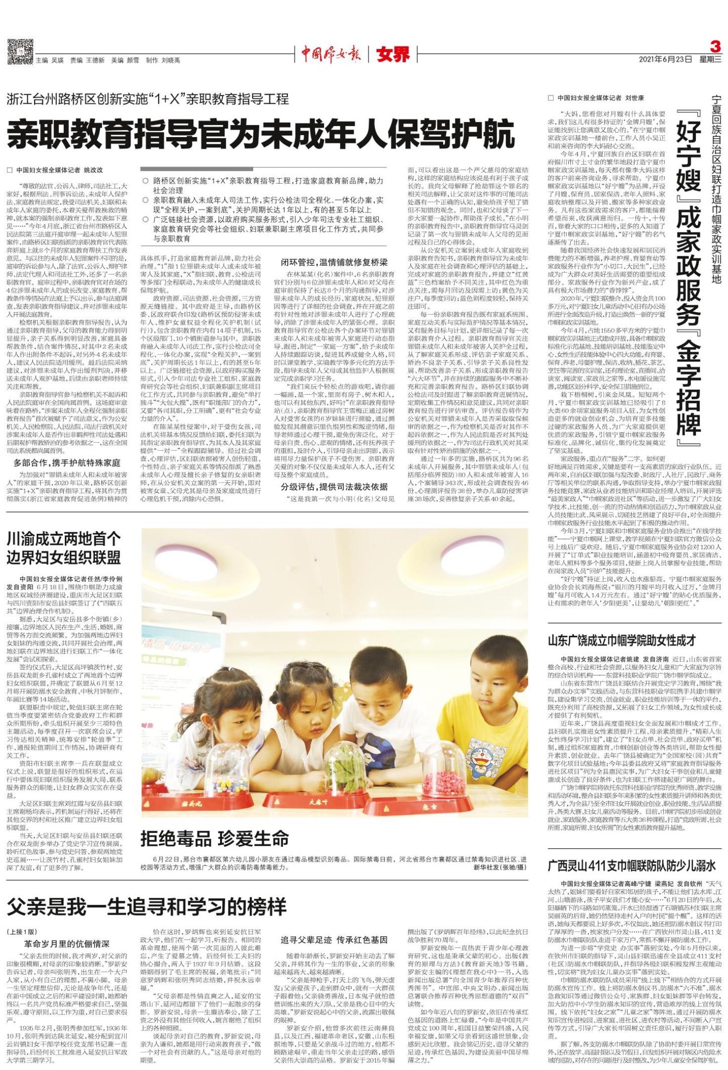 《中国妇女报》(电子版)的一切内容(包括但不限于文字、图片、PDF、图表、标志、标识、商标、版面设计、专栏目录与名称、内容分类标准以及为读者提供的任何信息)仅供中国妇女报读者阅读、学习研究使用,未经中国妇女报及/或相关权利人书面授权,任何单位及个人不得将《中国妇女报》(电子版)所登载、发布的内容用于商业性目的,包括但不限于转载、复制、发行、制作光盘、数据库、触摸展示等行为方式,或将之在非本站所属的服务器上作镜像。否则,中国妇女报将采取包括但不限于网上公示、向有关部门举报、诉讼等一切合法手段,追究侵权者的法律责任。