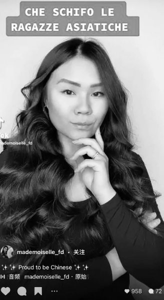 据意大利《晚邮报》消息,这名女孩名叫弗朗西斯卡·戴,是一个在博洛尼亚出生长大的中国女孩。她是一名原创视频博主,在TikTok上已拥有15.2万粉丝,在Instagram上也拥有8.8万粉丝。