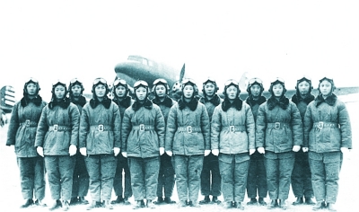 新中国首批女飞行员共14人,她们是:陈志英、邱以群、施丽霞、万婉玲、伍竹迪、戚木木、秦桂芳、王坚、何月娟、武秀梅、黄碧云、周映芝、阮荷珍、周真明。这些女飞行员先后于1951年1月初和3月底到牡丹江空军第七航校学习飞行。到航校后,她们经受住了一系列考验,战胜了天气寒冷、文化程度低、生活艰苦,特别是飞机破旧等困难。当时,女飞行员们在航校飞的是非常落后的教练机,没有座舱盖。飞机上的设备陈旧、简陋,一些零部件都是拼凑起来的,一副螺旋桨、一个轮胎,往往是几架飞机共用,机身上到处是补丁。飞机上既没有与地面联络的无线电台,更没有导航仪器,也没有机内通话器,飞机的前后舱靠一根橡皮管子联络,教员与学员各执一头,这样教员的声音学员才能听见。地面也没有塔台指挥员指挥,空地无法联络,是靠一名信号员站在跑道头一侧举旗,举白旗表示可以落地,举红旗必须复飞。