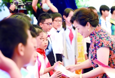 5月30日,王小慧为武俊极同学颁发北京市西城区少年宫第三届美德少年奖。