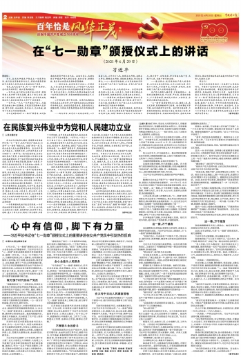 6月29日,“七一勋章”颁授仪式在人民大会堂金色大厅隆重举行,习近平总书记向“七一勋章”获得者颁授勋章并发表重要讲话,强调一百年来,一代又一代中国共产党人,为赢得民族独立和人民解放、实现国家富强和人民幸福,前仆后继、浴血奋战,艰苦奋斗、无私奉献,谱写了气吞山河的英雄壮歌。习近平总书记的重要讲话在女共产党员中引发热烈反响,大家纷纷表示要坚定理想信念,坚定奋斗意志,坚定恒心韧性,建功“十四五”,奋进新征程,为实现中华民族伟大复兴的中国梦贡献磅礴巾帼力量。