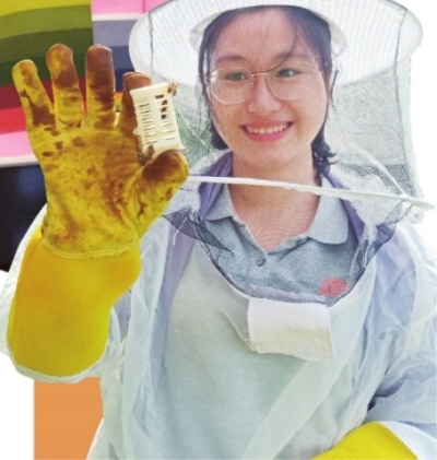 养蜂业是短平快的致富项目,黄文秀想引进来给村民。2019年6月,她来到雅长林场参观采蜜。养蜂场乌压压的蜜蜂有点吓人,但黄文秀鼓足勇气,带上护罩去抓蜜蜂、找蜂王。“要靠这个产业给村民增收呢,我不能怕!”