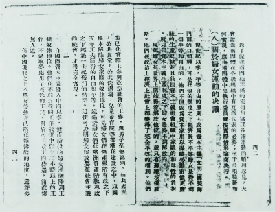 ▲ 1922年7月16日,中国共产党第二次全国代表大会在上海召开。大会通过《关于妇女运动的决议》。这是中国历史上首次以政党名义提出的妇女运动决议。决议指出,只有无产阶级获得了政权,妇女才能得到真正的解放。