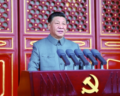 7月1日,庆祝中国共产党成立100周年大会在北京天安门广场隆重举行。中共中央总书记、国家主席、中央军委主席习近平发表重要讲话。 新华社记者 鞠鹏/摄
