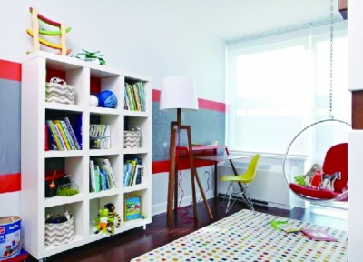记得我儿子3岁时,我们搬入新居,那时孩子不但有自己的房间,我们还在客厅一角铺了很大一块地毯并告诉他,那是他的领地,可以随意摆放玩具、图书。