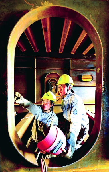 在项目现场作业时,因为没有集中供气,气瓶用完了得自己去换,几十斤的气瓶很难拿得动。有一次王中美实在拿不动就砸到了脚趾,指甲都被砸烂了。经历过重重磨炼以及心态的严峻考验,如今的王中美已经历炼得像完全换了一个人。“现在我们跟男同志没什么区别,几十斤、百来斤的东西,我很容易就拿起来了。真正干起活来,女性体型小,对于箱体较小的作业空间来说,女性更适合,同时女性的耐力也要好于男同志。”