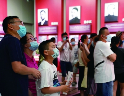 7月11日,观众在中共一大纪念馆内参观。7月以来,中共一大纪念馆精细接待流程,增加便民服务,应对大客流与高温天气的考验,提升观众参观体验。 新华社记者 刘颖/摄