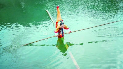 独竹漂不是特效也不是杂技,而是贵州省一项非物质文化遗产。它发源于赤水河流域,是先民为了渡河而创造的一种交通工具。如今它虽然退出了人们的日常生活,但却仍是贵州当地一项颇受欢迎的体育运动。杨柳七岁开始学独竹漂,“竹子是陪伴我十八年的伙伴,也是我独一无二的舞台。”