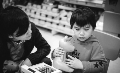 朋友B的孩子3岁多,每次出门买玩具就冲着大人说,打开你们的手机,我要买!