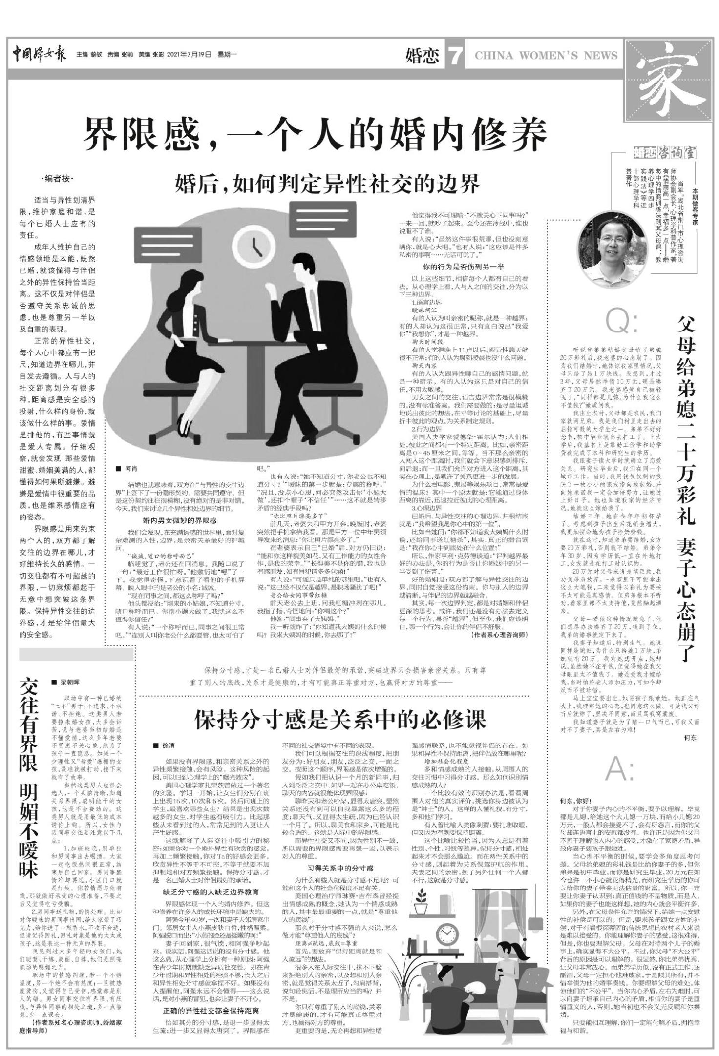 界限感体现一个人的婚内修养。但这种修养在许多人的成长环境中是缺失的。