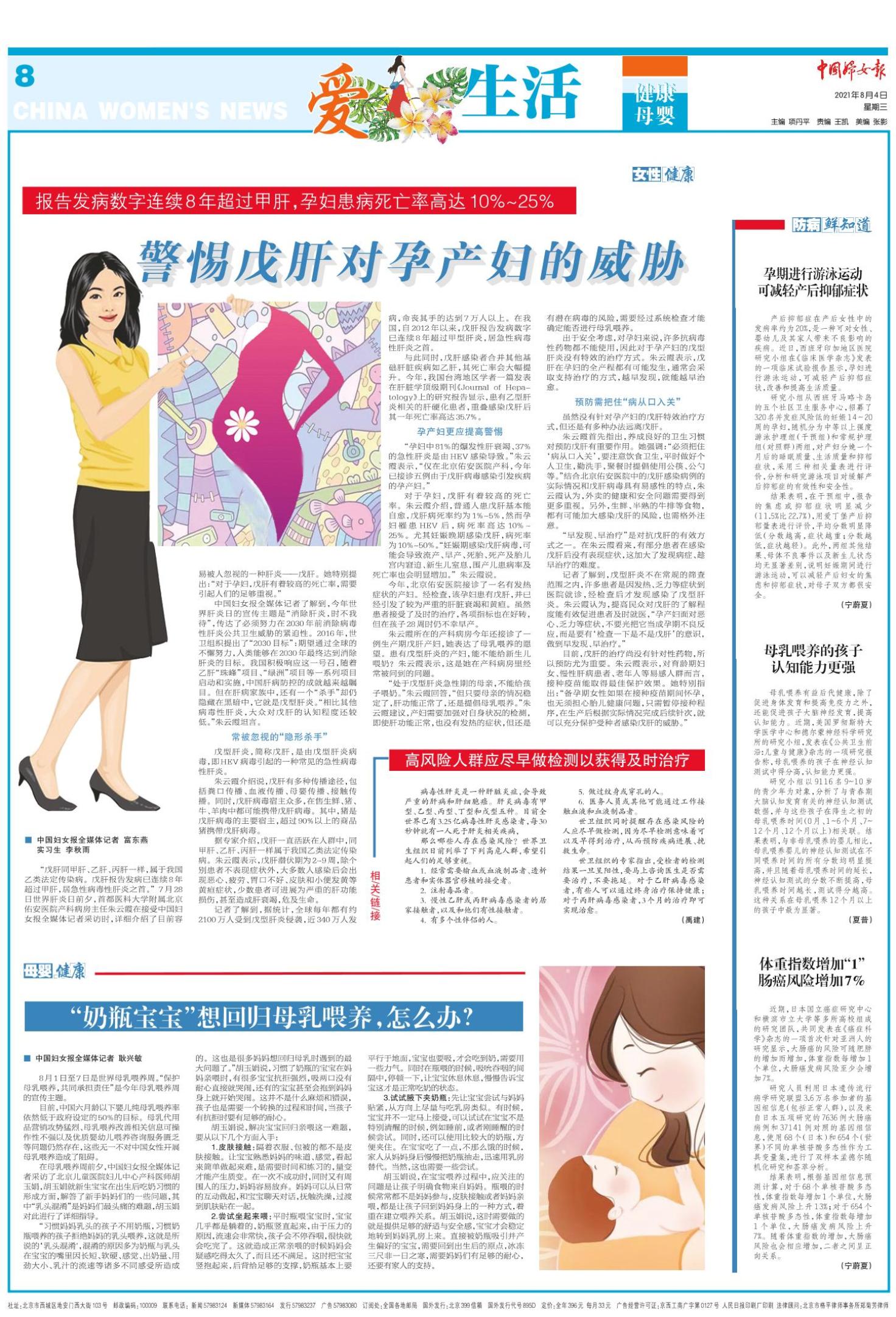 《中国妇女报》(电子版)的一切内容(包括但不限于文字、图片、PDF、图表、标志、标识、商标、版面设计、专栏目录与名称、内容分类标准以及为读者提供的任何信息)仅供中国妇女报读者阅读、学习研究使用,未经中国妇女报及/或相关权利人书面授权,任何单位及个人不得将《中国妇女报》(电子版)所登载、发布的内容用于商业性目的,包括但不限于转载、复制、发行、制作光盘、数据库、触摸展示等行为方式,或将之在非本站所属的服务器上作镜像。否则,中国妇女报将采取包括但不限于网上公示、向有关部门举报、诉讼等一切合法手段,追究侵权者的法律责任。