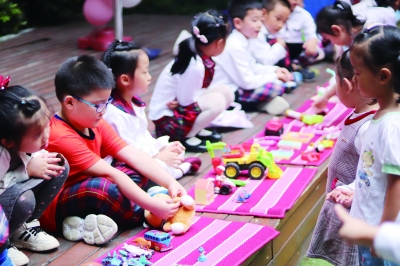 “孩子的模仿能力非常强,混龄分班让他们最初时被照顾,在被照顾中又慢慢有了责任意识,懂得去照顾他人。”陈燕说,幼儿园还巧妙利用孩子们的模仿能力,让爱书的孩子扮演图书博士,分享自己爱看的书,书坏了自己动手修补,增强他们的自主性和责任意识。