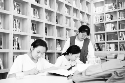 8月4日,在杏花岭区域党群服务中心,大学生志愿者张哲宇(右)为小朋友辅导作业。 暑假以来,位于山西省太原市杏花岭区的杏花岭区域党群服务中心通过“社区+第三方+志愿者”的形式,免费为孩子们提供声乐、书法、环保等课程和活动,丰富了孩子们的暑期生活,也解决了家长们的后顾之忧。 新华社记者 杨晨光/摄