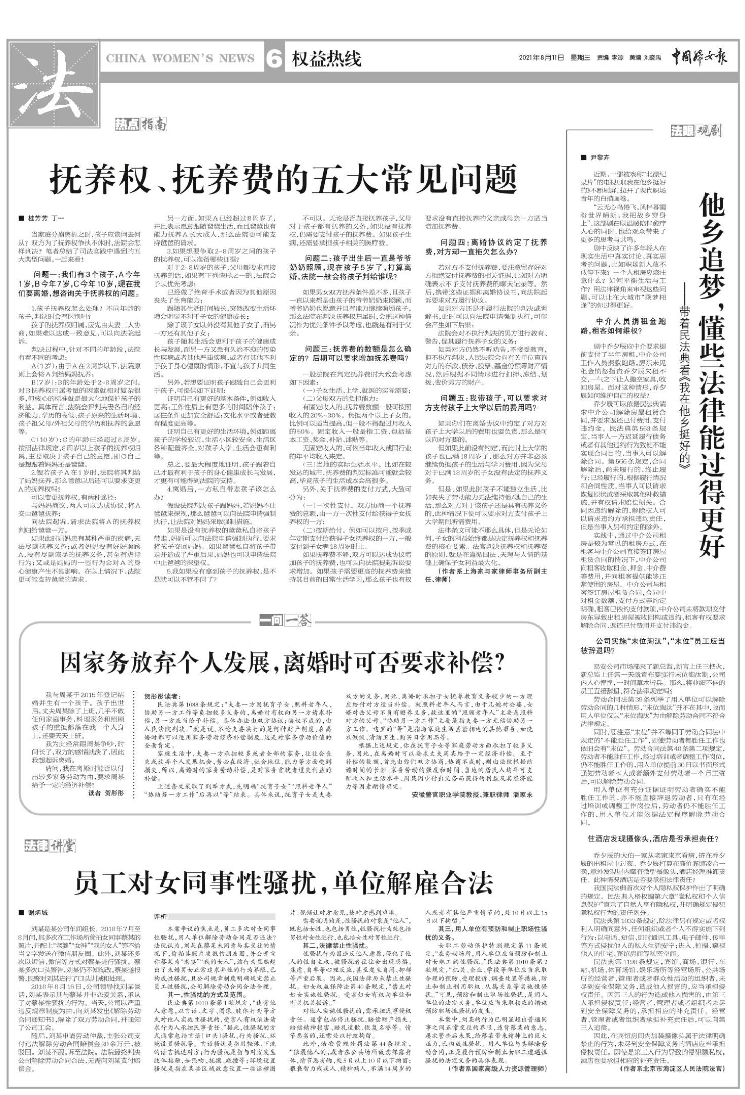 《中国妇女报》(电子版)的一切内容(包括但不限于文字、图片、PDF、图表、标志、标识、商标、版面设计、专栏目录与名称、内容分类标准以及为读者提供的任何信息)仅供中国妇女报读者阅读、学习研究使用,未经中国妇女报及/或相关权利人书面授权,任何单位及个人不得将《中国妇女报》(电子版)所登载、发布的内容用于商业性目的,包括但不限于转载、复制、发行、制作光盘、数据库、触摸展示等行为方式,或将之在非本站所属的服务器上作镜像。否则,中国妇女报将采取包括但不限于网上公示、向有关部门举报、诉讼等一切合法手段,追究侵权者的法律责任。