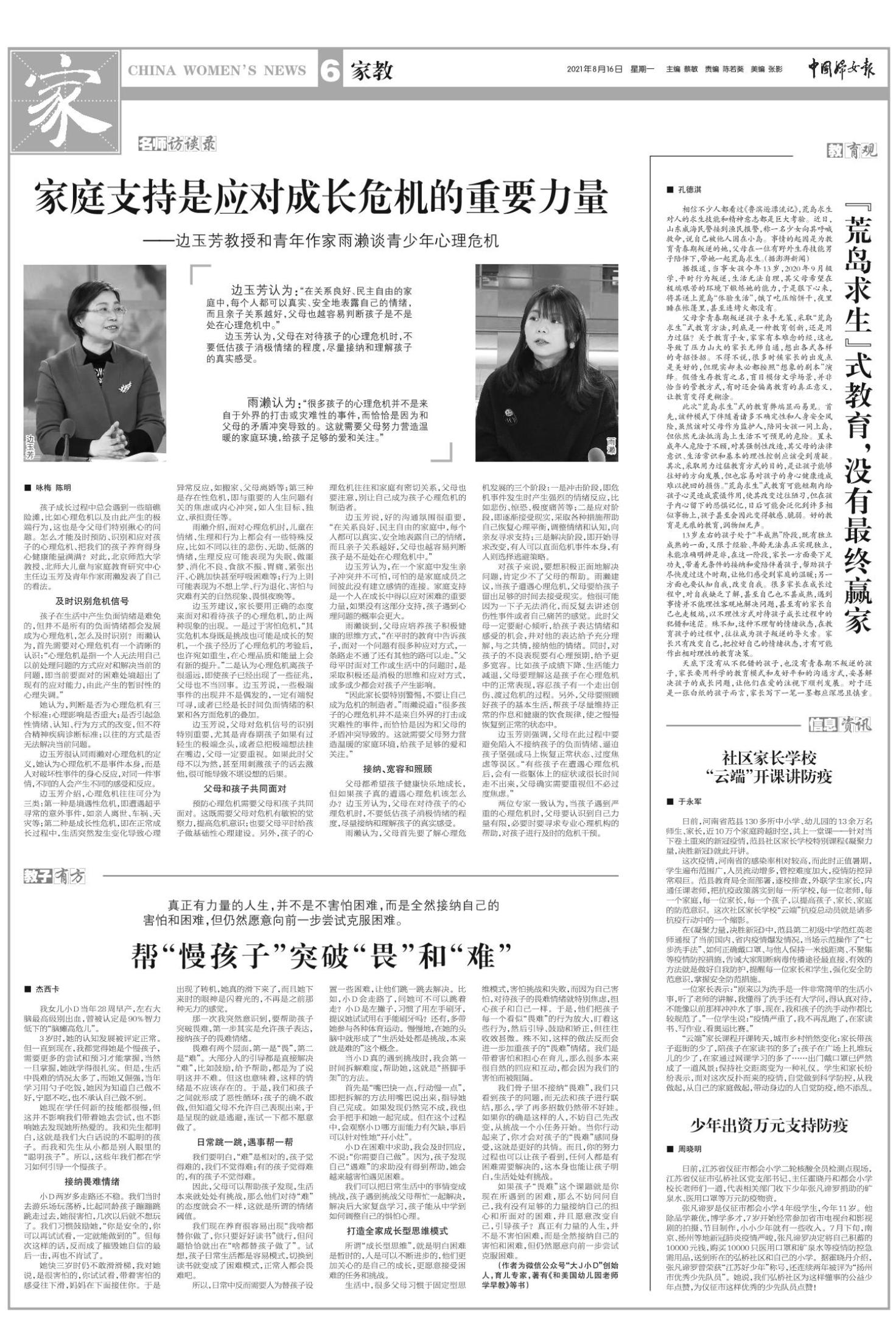 《中国妇女报》(电子版)的一切内容(包括但不限于文字、图片、PDF、图表、标志、标识、商标、版面设计、专栏目录与名称、内容分类标准以及为读者提供的任何信息)仅供中国妇女报读者阅读、学习研究使用,未经中国妇女报及/或相关权利人书面授权,任何单位及个人不得将《中国妇女报》(电子版)所登载、发布的内容用于商业性目的,包括但不限于转载、复制、发行、制作光盘、数据库、触摸展示等行为方式,或将之在非本站所属的服务器上作镜像。否则,中国妇女报将采取包括但不限于网上公示、向有关部门举报、诉讼等一切合法手段,追究侵权者的法律责任。