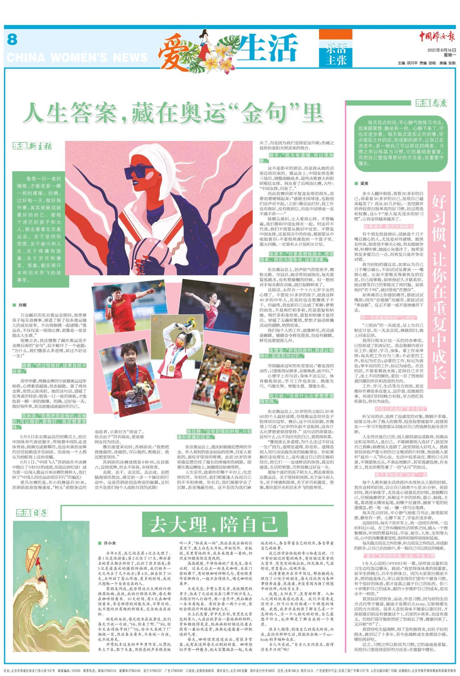 《中国妇女报》(电子版)的一切内容(包括但不限于文字、图片、PDF、图表、标志、标识、商标、版面设计、专栏目录与名称、内容分类标准以及为读者提供的任何信息)仅供中国妇女报读者阅读、学习研究使用,未经中国妇女报及/或相关权利人书面授权,任何单位及个人不得将《中国妇女报》(电子版)所登载、发布的内容用于商业性目的,包括但不限于转载、复制、发行、制作光盘、数据库、触摸展示等行为方式,或将之在非本站所属的服务器上作镜像。否则,中国妇女报将采取包括但不限于网上公示、向有关部门举报、诉讼等一切合法手段,追究侵权者的法律责任。