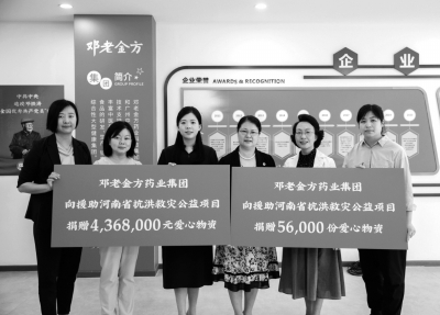 “一方有难,八方支援。”邓老金方药业科技集团近日通过广东省妇女儿童基金会向河南抗洪一线捐赠56000份爱心物资,总价值超436万元,助力守护灾区群众生命健康。自从2020年初新冠肺炎疫情发生以来,邓老金方药业集团联合兄弟集团已向国内20个省市及海外疫区国家和地区累计捐赠了超百万份产品,捐赠物资的价值总额超过1.5亿元。